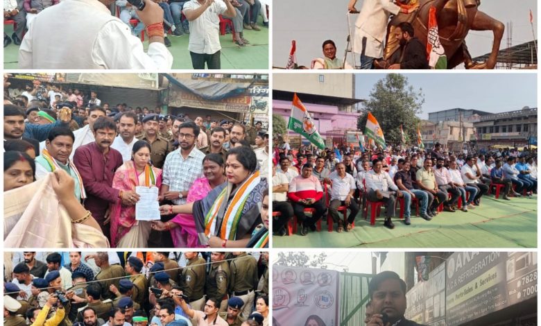 कांग्रेसियों द्वारा कलेक्ट्रेट का घेराव, महती आम सभा प्रशासन के छूटे पसीने