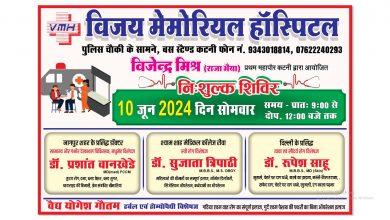 निःशुल्क स्वास्थ्य शिविर का आयोजन 10 जून को विजय मेमोरियल हॉस्पिटल में.