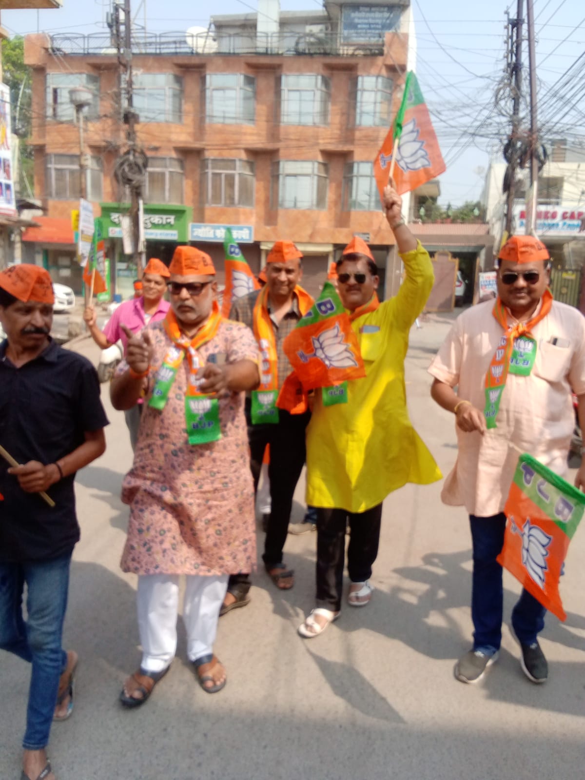 भारतीय जनता पार्टी दक्षिण मंडल द्वारा भाजपा के 42 वे स्थापना दिवस पर शोभायात्रा निकाळी।