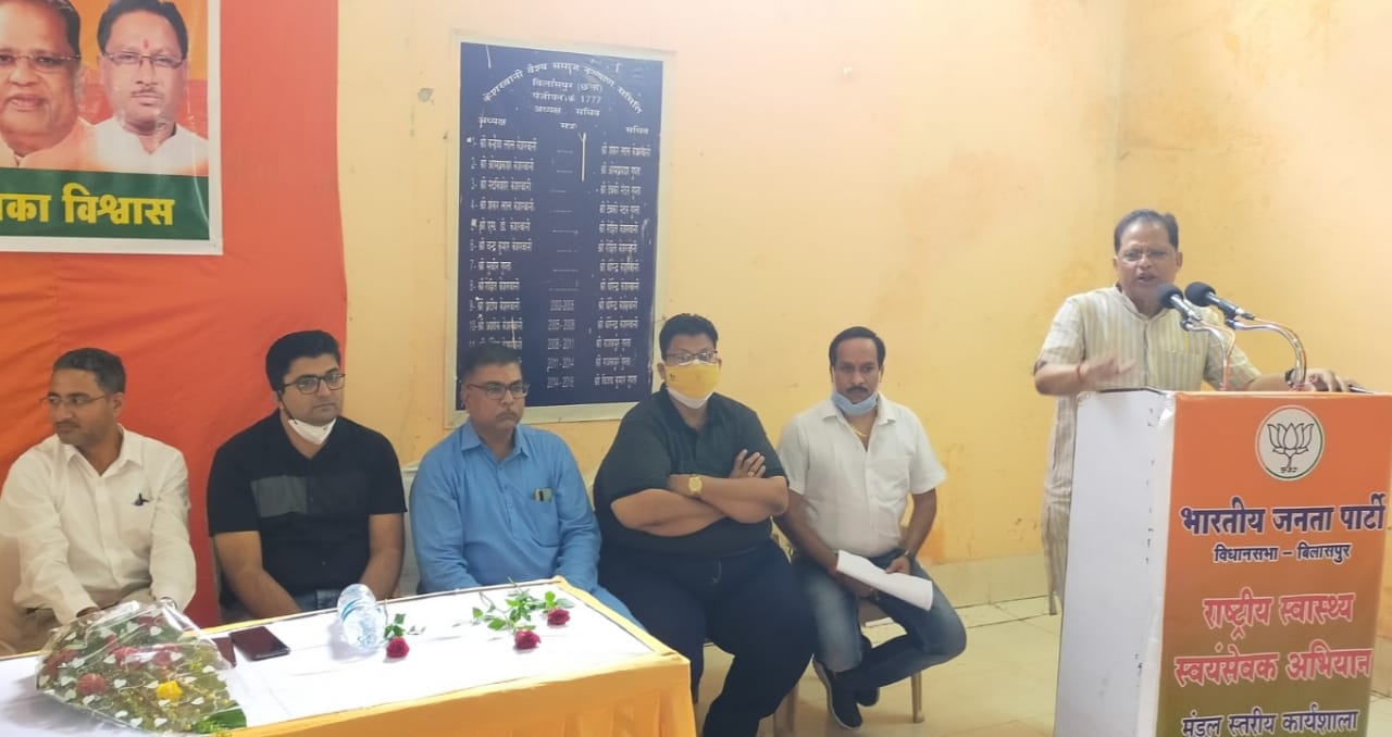 बिलासपुर-: भारतीय जनता पार्टी दक्षिण मंडल बिलासपुर के द्वारा स्वास्थ्य स्वयं सेवक प्रशिक्षण का कार्यक्रम आदरणीय अमर अग्रवाल जी के मार्गदर्शन और आतिथ्य में केशरवानी भवन इमलीपारा बिलासपुर में संपन्न हुआ।