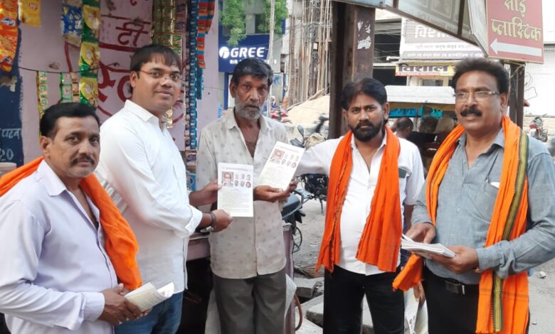 बिलासपुर-: भारतीय जनता पार्टी बिलासपुर के द्वारा कुशाभाऊ ठाकरे जन्म शताब्दी के अवसर पर कार्य विस्तारक योजना के तहत आज भाजपा दक्षिण मंडल के वार्ड क्रमांक 22 आजाद नगर मसानगंज के बूथ क्रमांक 103 तेलीपारा में घर-घर जाकर जनसंपर्क किया गया तथा लोगों से काग्रेंस की भूपेश सरकार की नाकामियों गिनाई गई एवं पिछले 15 वर्ष में भारतीय जनता पार्टी के कार्य के बारे में भी चर्चा की तथा वर्तमान में मोदी सरकार के द्वारा किए जा रहे कार्यों के बारे में लोगों से जनसंपर्क के दौरान बताया गया वार्ड में कांग्रेस के प्रति काफी आक्रोश है की जब से कांग्रेस आई है तब से किसी भी योजना का फायदा नहीं मिल रहा है और ना ही कांग्रेस के पार्षद कोई कार्य कर रहे हैं इस अवसर पर वार्ड क्रमांक 22 के पूर्व पार्षद तथा जिला कार्यसमिति सदस्य राजेश मिश्रा विस्तारक प्रमुख के रूप मैं श्री सुनील विश्वकर्मा जी बूत अध्यक्ष श्री नवीन पटेल प्रदीप वर्मा वरिष्ठ कार्यकर्ता बालेंद्र रजक राजकुमार श्रीवास विकास पांडे मुकेश रजक आदि कार्यकर्ता उपस्थित थे