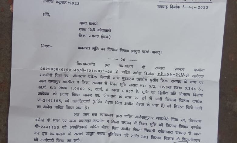 जबकि पुलिस के द्वारा बनाए गए मामले को लेकर वरिष्ठ अधिवक्ता अशोक मिश्रा ने सवाल उठाते हुए तर्क संगत बात कही है कि जिस अधेड़ आदिवासी के खिलाफ पुलिस ने शहर के सबसे विवादित कारोबारी के प्रभाव में आकर उसकी झूठी शिकायत प्रकरण बनाया है वो पूरी तरह से असंवैधानिक है। पीड़ित आदिवासी कानूनी प्रक्रिया के तहत अपने मृत पिता से विरासत में मिली भूमि की ऋण पुस्तिका प्राप्त की है। जिसके लिए तहसील न्यायालय ने पूरी विधिक प्रक्रिया चली है। पीठासीन अधिकारी के लिखित आदेश उपरांत ऋण पुस्तिका की द्वितीय प्रति बनी है। ऋण पुस्तिका के संबंध में न्यायालय में पेश किया गया हलफनामा सही है या गलत है यह न्यायाधीश तय करेंगे न कि विवादित व्यापारी मेहता और सिटी कोतवाली पुलिस करेगी। हुआ यूं है कि करोड़ो रुपए मूल्य की उक्त आदिवासी भूमि को इस इस बदनाम और विवादित व्यापारी ने अपने पैसों के बल पर झूठे दस्तावेज बनाकर अपने अधिकार और कब्जे में रखने का प्रयास किया है। इस प्रयास में उसने भूमि की प्रथम ऋण पुस्तिका को उसने अपने पास जबरदस्ती रख ली है। उक्त धूर्त कारोबारी ने मृत आदिवासी किसान पिलाराम भूईंहर के द्वारा बनाए गए फर्जी वसीयत नामा को आधार बनाते हुए राजस्व न्यायलय भूमि को अपने नाम चढ़ाने की कोशिश की। उसके इस कृत्य को अदालत ने अवैध बताते हुए दिनांक 8 जुन 2022 को अपने फैसले में न केवल पीड़ित आदिवासी किसान मकसिरो के नाम पर नकेल द्वितीय ऋण पुस्तिका प्रदान करने बल्कि प्रथम ऋण पुस्तिका को उक्त विवादित कारोबारी से जप्त कर अदालत में पेश करने का आदेश सिटी कोतवाली पुलिस को जारी किया था । न्यायालय के उक्त आदेश के विरुद्ध कारोबारी मेहता ने अपीलीय न्यायलय में आवेदन प्रस्तुत किया। परंतु अदालत ने उसकी अपील को सुनवाई के बाद पुनः खारिज कर दिया। इस तरह सिटी कोतवाली पुलिस ने राजस्व न्यायालय के आदेश को आश्चर्य जनक ढंग से अनदेखा करने का काम किया है। इधर इसी मामले में राष्ट्रीय अनुसूचित जाति जनजाति आयोग ने कलेक्टर रायगढ़ रानू साहू और एस पी को पत्र लिखकर उन्हे आगामी तिथि तक आवश्यक रूप से पीड़ित आदिवासी किसान मकसीरो को भूमि का विधिक कब्जा दिलाने के निर्देश दिए है। इन सबकी जानकारी होते हुए भी शहर के इस अत्यंत विवादित व्यापारी के झूठे आवेदन पर सिटी कोतवाली पुलिस ने नियम विरुद्ध ढंग से कार्यवाही करते हुए उस गरीब आदिवासी किसान को अपनी हिरासत में ले लिया है को अपने पिता की भूमि उक्त कारोबारी के कब्जे से मुक्त कराने के उद्देश्य से विधिक लड़ाई लड़ रहा है। रायगढ़ की सिटी कोतवाली पुलिस की असंवैधानिक कार्यवाही की वजह से आज माननीय न्यायलय के समक्ष ऐसा मामला पेश आया है जो यह दर्शाता है कि पुलिस पीड़ित को न्याय दिलाने का काम करे न करे परंतु 