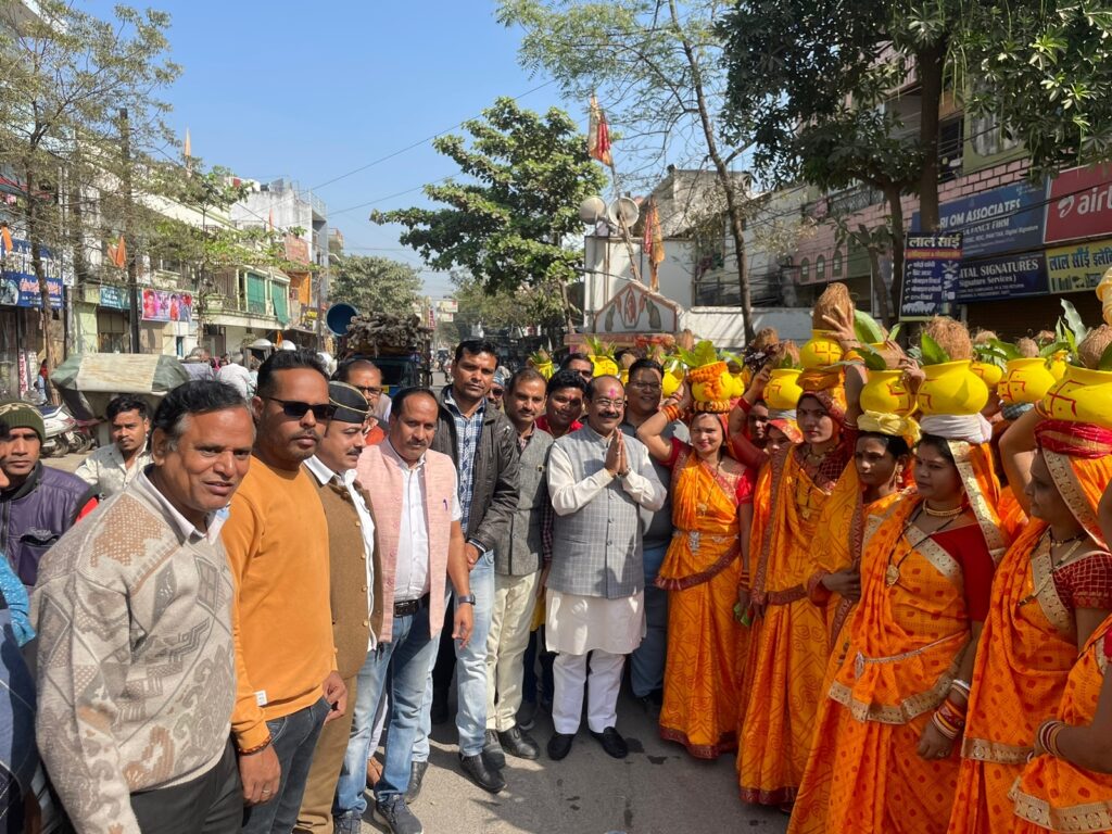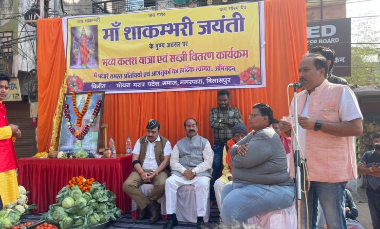 बिलासपुर:-/माता शाकम्भरी जयंती के शुभ अवसर पर मरार पटेल समाज के द्वारा छेर छेरा शाकम्भरी पर्व पर मगर पारा बजरंग पंचायत मंदिर के पास समाज की महिलाओं द्वारा कलश यात्रा निकाली गई एवम हर्षोल्लास के साथ समाज के वरिष्ठ जनो के द्वारा विधिवत पूजन और कीर्तन के साथ उत्सव मनाया गया ।जिसमें मुख्य अतिथि के रूप में बिलासपुर के लोकप्रिय सांसद एवम प्रदेश अध्यक्ष भारतीय जनता पार्टी श्री अरुण साव जी कार्यक्रम में बतौर मुख्य अतिथि शामिल रहे एवं कार्यक्रम के अध्यक्ष श्री छेदी पटेल जी तथा जिला सचिव श्याम कार्तिक पटेल, जिला मीडिया प्रभारी शिव पटेल जी, मनीष पटेल जी, प्रशांत पटेल जी विशेष रूप से मंच पर उपस्थित रहे। यह कार्यक्रम मगर पारा मे लगातार 35 वर्षो से किया जा रहा है। कलश यात्रा माता शाकम्भरी जी की पूजा अर्चना के अलावा इस वर्ष विशेष रूप से आम जनों को अतिथियों व समाज के पदाधिकारियों द्वारा एक क्विंटल साग सब्जीयो का वितरण किया गया ।इस कार्यक्रम का मंच संचालन भाजपा के अमित तिवारी द्वारा किया गया। इस कार्यक्रम में नारायण पटेल, जोगी पटेल ,कन्हैया पटेल , अध्यक्ष जुगल अग्रवाल,नारायण गोस्वामी, बलि पटेल , लल्ला यादव ,सुशील पटेल एवम महिला संगठन से सरोज पटेल ऋतु पटेल लक्ष्मी पटेल ,मीना गोस्वामी ,सत्यजीत भौमिक,मनीष गुप्ता,राकेश पटेल,जगदीश साव,ऋषि उपाध्याय,महेंद्र जैसवाल, देवेश खत्री,साहिल कश्यप,और बड़ी मात्रा मे मरार पटेल समाज के लोग एवम महिलाए उपस्थित रही।