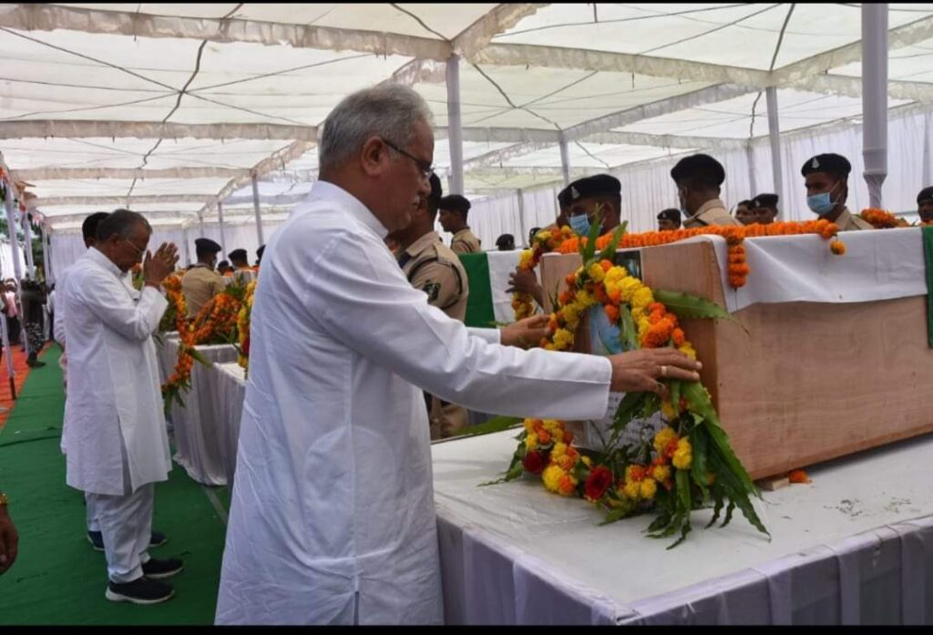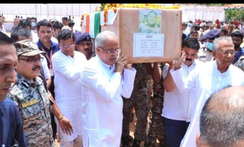मुख्यमंत्री भूपेश बघेल ने नक्सल हमले में शहीद हुए जवानों को दी श्रद्धांजलि…मुख्यमंत्री और गृह मंत्री ने जवानों की अर्थियों को दिया कंधा..