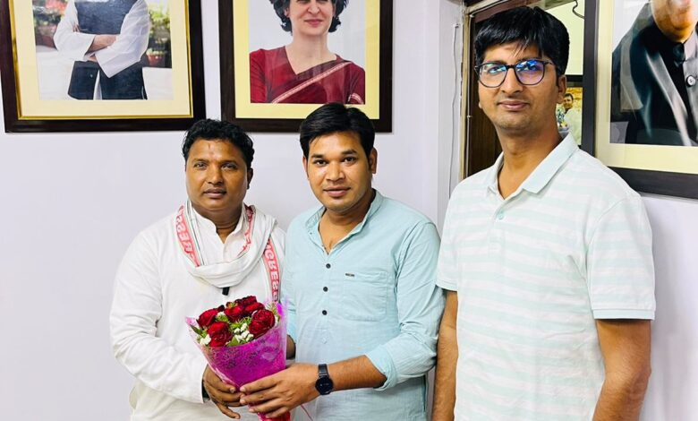 बिलासपुर:- कांग्रेस नेता अशोक राजवाल युवा कांग्रेस के राष्ट्रीय अध्यक्ष श्रीनिवास बी वी से दिल्ली राष्ट्रीय कार्यलय में मिलकर कर्नाटक चुनाव में पार्टी को मिली ऐतिहासिक जीत की बधाई एवं शुभकामनाएँ दिये।