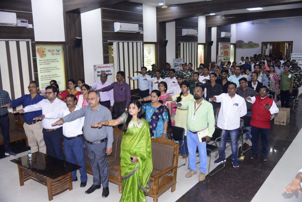बिलासपुर, 04 नवम्बर 2023/जिले में शत प्रतिशत मतदान का लक्ष्य हासिल करने जिला प्रशासन द्वारा मतदाता जागरूकता के लिए निरंतर विभिन्न कार्यक्रमों का आयोजन किया जा रहा है। इसी कड़ी में आज प्रार्थना सभाकक्ष में रक्तदान महादान मतदान महादान कार्यक्रम आयोजित किया गया। शिविर में कलेक्टर एवं जिला निर्वाचन अधिकारी श्री अवनीश शरण ने स्वयं रक्तदान कर लोगों को रक्तदान और मतदान के लिए प्रेरित किया। नगर निगम कमिश्नर श्री कुणाल दुदावत और जिला पंचायत के मुख्य कार्यपालन अधिकारी और स्वीप के नोडल अधिकारी श्री अजय अग्रवाल सहित शिविर में सैकड़ों लोगों ने उत्साह के साथ रक्तदान किया। कलेक्टर ने कहा कि जीवन के लिए रक्तदान और लोकतंत्र के लिए मतदान प्राणवायु है। कलेक्टर ने शिविर में मौजूद सभी लोगों को मतदाता शपथ भी दिलाई।