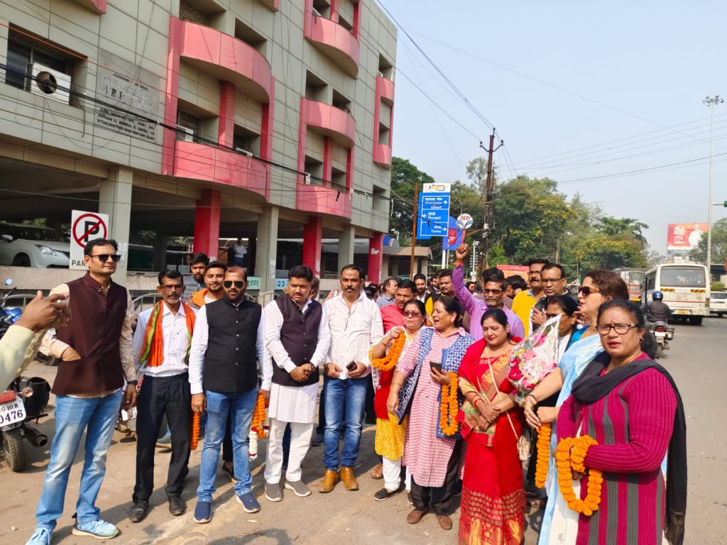 बिलासपुर:- लखन देवांगन का भाजपा कार्यकर्ताओं ने किया भव्य स्वागत,मंत्री मंडल गठन के पश्चात कैबिनेट मंत्री लखन लाल देवांगन प्रथम बार बिलासपुर पहुंचे इस अवसर पर बिलासपुर भाजपा के पदाधिकारियों और कार्यकर्ताओं ने उनका भव्य स्वागत किया और शुभकामनाएं दी,इस अवसर पर प्रमुख रूप से प्रदेश मंत्री किसान मोर्चा राकेश तिवारी,संजय मुरारका(प्रदेश कार्य समिति सदस्य व्यापार प्रकोष्ठ),राजेश सिंह उपनेता प्रतिपक्ष,ओम देवांगन,नारायण गोस्वामी,धीरेंद्र केशरवानी,सचिन राव,जयेश तिवारी,राजकिशोर शर्मा,तामेश कश्यप,निलय तिवारी,विशाल सिंह,आयुष मेहता,राकेश साहू,सुधा गुप्ता,स्मृति जैन,सोभा कश्यप,मीना गोस्वामी आदि बड़ी संख्या मे कार्यकर्ता उपस्थित थे।