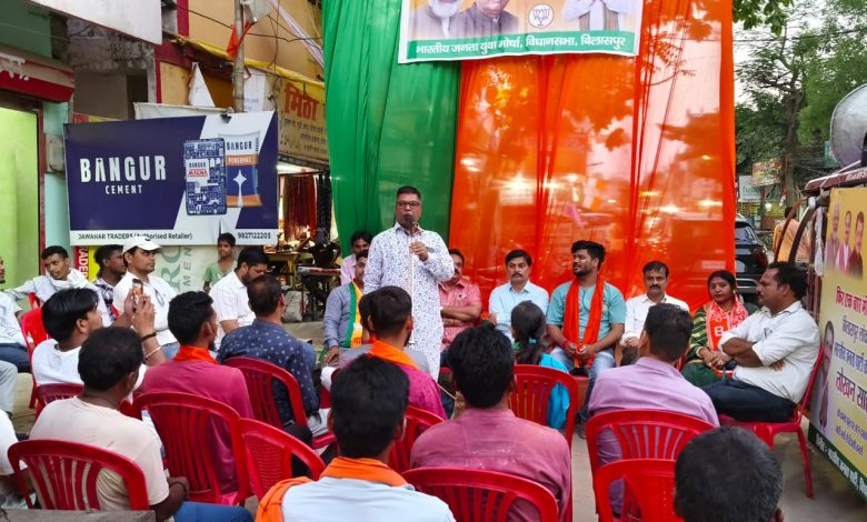 बिलासपुर :-जनता की सरकार जनता के द्वार मोदी की गारंटी भाजपा का वादा जनता को भरोसा भाजपा के साथ,महतारी सम्मान ,नुक्कड़ सभा युवा चौपाल, जनसंपर्क के तहत मतदाताओं का आशीर्वाद समर्थन भारतीय जनता पार्टी को मिल रहा। काम किया है काम करेंगे क्षुठे वायदे नही गढ़ेंगे मोदी की हर गांरटी पूरा करेंगे।