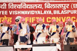 दीक्षांत समारोह को संबोधित करते हुए राज्यपाल श्री रमेन डेका ने कहा कि विश्वविद्यालय सिर्फ संस्थानों से कहीं अधिक है। विश्वविद्यालय हमारी सामूहिकता, ज्ञान और संस्कृति के संरक्षक है। वे ऐसे स्थान है जहां इतिहास संरक्षित किया जाता है। साहित्य का विश्लेषण किया जाता है। आप अपनी पढ़ाई के माध्यम से विचार के विविध क्षेत्रों मेें जुड़ रहें है मानवता के बारे में आपकी विचार को समृद्ध किया जा रहा है। भारत सरकार की राष्ट्र शिक्षा नीति 2020 दूरदर्शिता का प्रतिनिधित्व करती है। इसका उद्देश्य युवाओं को तेजी से गतिशील दुनिया में आगे बढ़नेे के लिए कौशल और ज्ञान से परिपूर्ण करना है। छत्तीसगढ़ के लिए यह नीति प्रगतिशील सुधारों की लहर लाती है। जो हमारे शैक्षणिक संस्थानों पर गहरा प्रभाव डालने के लिए तैयार है। विश्वविद्यालय में संचालित पाठ्यक्रम को न केवल उभरते हुए रूझानों और प्रौद्योगिकियों के प्रति गतिशील और उत्तरदायी बनाना चाहिए बल्कि इसमें भारतीय परंपरा की समृद्ध विरासत भी शामिल होनी चाहिए। हम मिलकर एक उच्च शिक्षा प्रणाली का निर्माण कर सकते हैं, जो न केवल हमारे छात्रों की जरूरतों केा पूरा करेगी बल्कि हमारे राज्य और राष्ट्र के समग्र विकास में योगदान देगी।