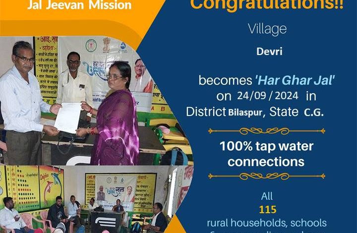 बिलासपुर, 25 सितम्बर 2024/शासन द्वारा प्रदान की जा रही विभिन्न योजनाओं से ग्रामीण क्षेत्रों में भी तेजी से विकास हो रहे हैं। लोगों को पानी की समस्याओं से छुटकारा दिलाने जल जीवन मिशन योजना चलाई जा रही है। योजना के तहत तखतपुर ब्लॉक के ग्राम पंचायत देवरी और ग्राम पंचायत पोंगरिहा में जल संकट की समस्या से ग्रामवासियों को पूरी तरह से निजात मिल गई है साथ ही हैण्डपंप पर निर्भरता खत्म हो गई है। अब भीषण गर्मी के मौसम में भी ग्रामीणों के घर शुद्ध पेयजल की आपूर्ति होगी। केंद्र सरकार की जल जीवन मिशन योजना के तहत 115 घरों में नल कनेक्शन से पेयजल की आपूर्ति की गई है।
