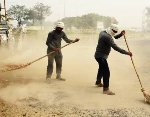 सुबह सुबह घूमने वाले धूल युक्त हवा से हो रहें परेशान, सफाई कर्मी सुबह 6 बजे रोड में लगाते है झाड़ू।