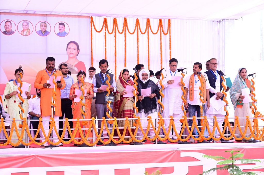 उप मुख्यमंत्री अरुण साव,केंद्रीय राज्य मंत्री तोखन साहू, अमर अग्रवाल विधायक बिलासपुर सहित अन्य विधायकों की मौजूदगी में ली शपथ