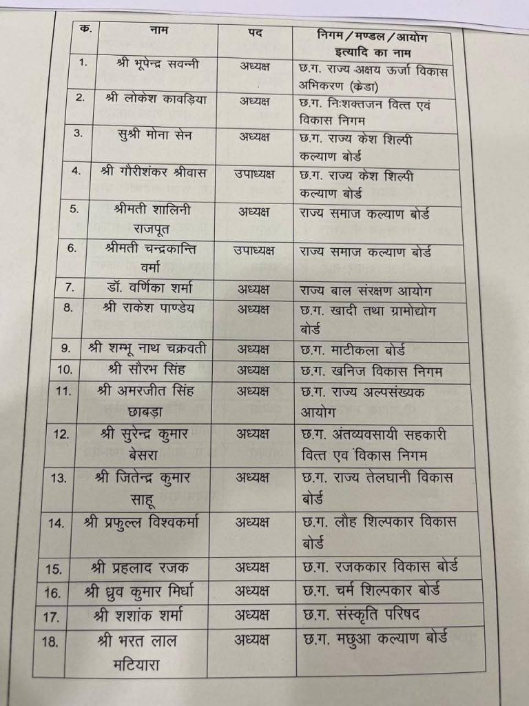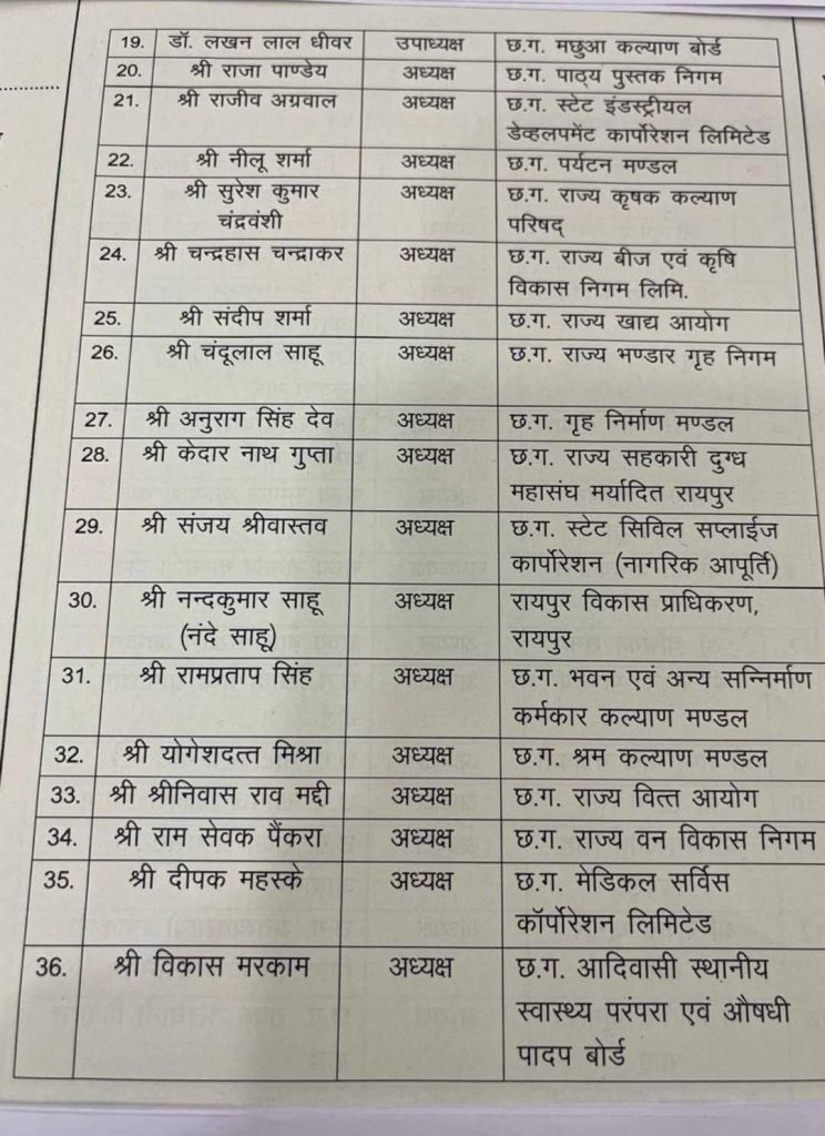 निगम बोर्ड अध्यक्ष की सूची जारी राजा पाण्डेय छत्तीसगढ़ पाठ्य पुस्तक निगम के अध्यक्ष बने।
