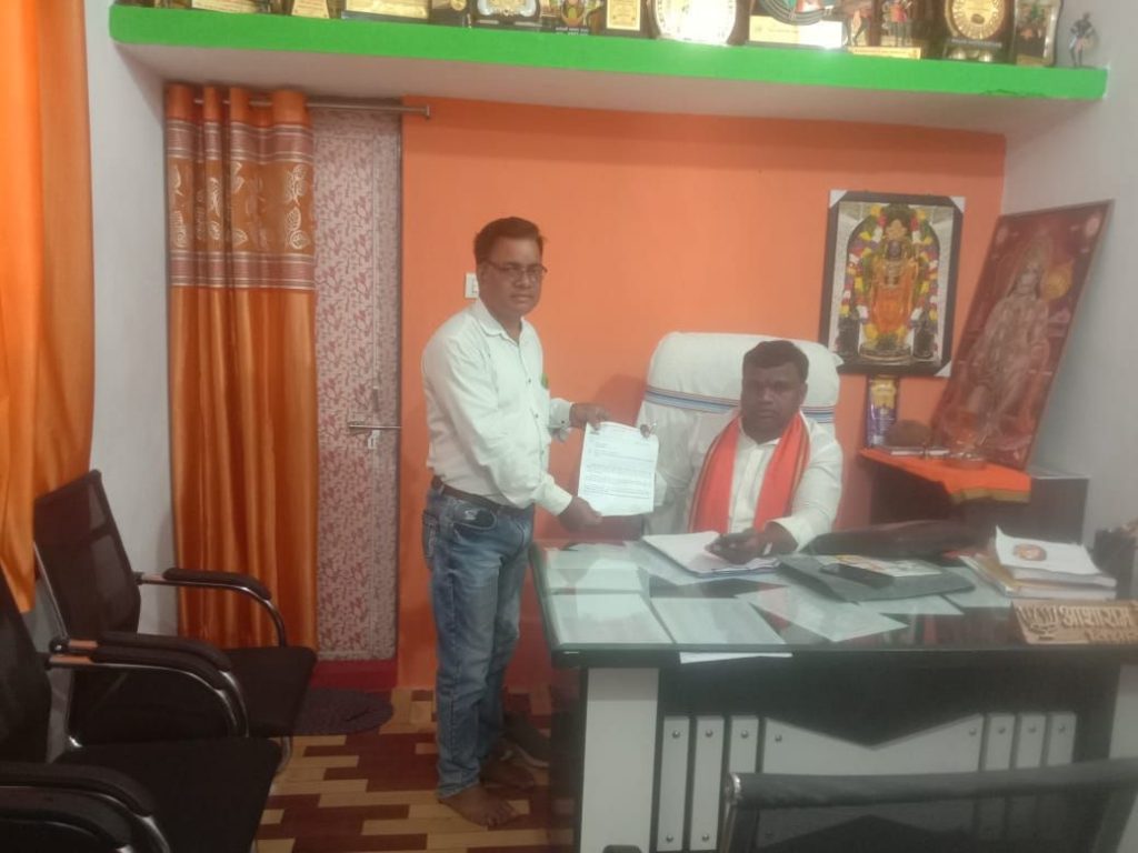 कांकेर :- -पुरे प्रदेश में अखिल भारतीय पत्रकार सुरक्षा समिति छत्तीसगढ़ के द्वारा विधायकों से पत्रकार सुरक्षा कानून को लेकर समर्थन मांगा जा रहा हैं और राज्यपाल के नाम ज्ञापन भी समाननीय विधायकों के माध्यम से भेजनें का भी कार्य किया जा रहा हैं। जहाँ सभी विधायकों ने पत्रकारों का विधानसभा में पारित सुरक्षा कानून का ड्राफ्ट कानून लागू करने हेतु भेजा गया उस पर राज्यपाल के द्वारा हस्ताक्षर नहीं किये जाने पर ड्राफ्ट पर राज्यपाल से चर्चा करने की बात कही और पत्रकारों को उनका अधिकार मिले उसके लिये अपना समर्थन भी दिया। इस तारतम्य अखिल भारतीय पत्रकार सुरक्षा समिति कांकेर जिलाध्यक्ष मनोज जायसवाल द्वारा कलेक्टर निलेश महादेव क्षीरसागर एवं विधायक आशा राम नेताम को ज्ञापन सौंपा। चित्र— कलेक्टर निलेश महादेव क्षीरसागर एवं कांकेर विधायक आशा राम नेताम को ज्ञापन सौंपते।