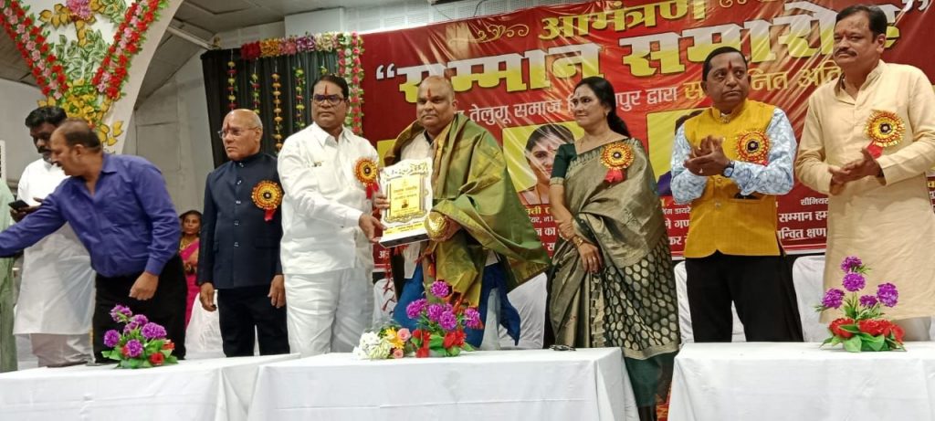 तेलुगू समाज की चार विभूतियों का हुआ सम्मान, समस्त तेलुगू समाज द्वारा सम्मान समारोह आयोजित ।
