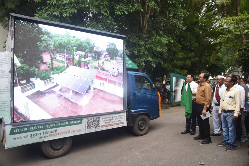 बिलासपुर, 12 सितम्बर 2025/प्रधानमंत्री सूर्यघर मुफ्त बिजली योजना की जानकारी देने के लिए तीन विशेष प्रचार वाहन को रवाना किया गया। कलेक्टर संजय अग्रवाल एवं बिजली विभाग के वरिष्ठ अधिकारियों ने जिला कार्यालय परिसर से हरी झण्डी दिखाकर वाहनों को रवाना किया। ये वाहन गांव-गांव और शहर-शहर जाकर लोगों को पीएम सूर्यघर मुफ्त बिजली योजना की जानकारी देंगे और सोलर पैनल लगवाने के लिए उन्हें प्रेरित करेंगे। योजना के अंतर्गत हितग्राहियों को राज्य और केंद्र सरकार की ओर से दी जाने वाली सब्सिडी, आवेदन प्रक्रिया और लोन सुविधा की जानकारी भी लोगों को उपलब्ध कराई जाएगी। योजना का मुख्य उद्देश्य बिजली के मामले में लोगों को आत्मनिर्भर बनाना और बिजली बिल में बचत करना है। इससे पर्यावरण संरक्षण को भी बढ़ावा मिलेगा। योजना को बिलासपुर जिले में अच्छी सफलता मिल रही है। बड़ी संख्या में लोग अब तक इस योजना का लाभ ले रहे है। इस अवसर पर सीएसईबी के ईडी श्री अम्बस्ट, एसई श्री एसके जांगड़े सहित जिला प्रशासन एवं बिजली विभाग के वरिष्ठ अधिकारी उपस्थित थे। बताया गया कि योजना के अंतर्गत अपने घर में 1 किलोवॉट का संयत्र लगाने पर 45 हजार, 2 किलोवॉट पर 90 हजार, 3 किलोवॉट पर 1 लाख 8 हजार का कुल अनुदान हितग्राहियों को मिलेगा।