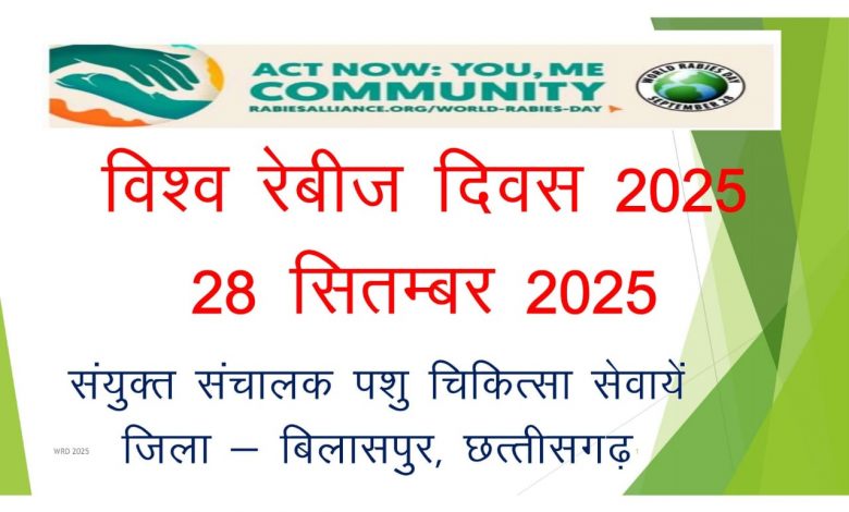 संयुक्त संचालक वेटेरिनरी विभाग डॉ. जी एस तंवर ने बताया कि 26 सितंबर को चुनिंदा स्कूलों में रेबीज के बारे में विभाग द्वारा जनजागरुकता भी फैलाई जाएगई। इसमें सेजेस skool डी.के.पी. कोटा, कन्या शाला रतनपुर, कन्या शाला बिल्हा, कन्या शाला मस्तुरी, कन्या शाला तखतपुर, कन्या शाला सकरी, कन्या शाला मंगला, कन्या शाला सरकण्डा बिलासपुर, बालक शाला सरकण्डा बिलासपुर एवं बालक शाला चिंगराजपारा बिलासपुर में विशेषज्ञो द्वारा शालेय छात्र-छात्राओं को दिनांक 26 सितंबर को व्याख्यान दिया जायेगा। उल्लेखनीय है कि रेबीज मनुष्यों एवं पशुओं में होने वाली लाईलाज बीमारी है एवं मनुष्यों में 90 प्रतिशत रेबीज बीमारी कुत्तों के काटने से होती है। तथा इसका उपचार संभव नहीं है, लेकिन रोक-थाम 100 प्रतिशत संभव है। इस रोग को जड़ से खत्म करने हेतु इस वर्ष का विश्व रेबीज दिवस का थीम है, “एक्ट नाउ , यू, मी एंड कम्युनिटी” जिसका मतलब है कि हम सब को, समुदाय को जागरूकता के साथ आगे आना होगा। 28 सितम्बर 2025 को अपने कुत्ते व बिल्लियों का टीकाकरण करवायें एवं इस जनहित के कार्यक्रम में अपना योगदान दें।